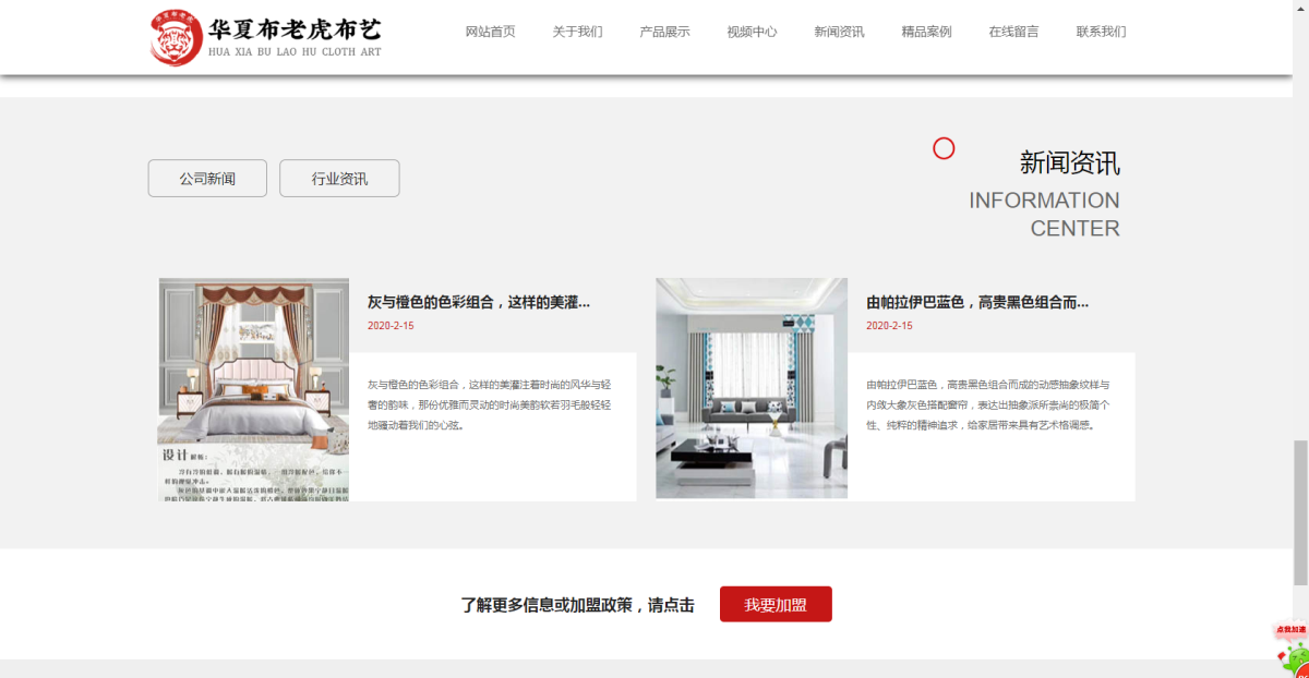 邯鄲市邯山區華夏布老虎布藝店是邯鄲窗簾布藝品牌,擁有500多平***豪華展廳,公司有十幾年的生產銷售管理經驗,有***的團隊,集設計、生產、銷售、培訓、服務于一體。華夏布老虎窗簾布藝致力于中高端布藝的開發設計,產品涵蓋了歐式、美式、法式、中式、古典、現代、田園、卡通等多種風格,能夠滿足不同需求的消費群體。